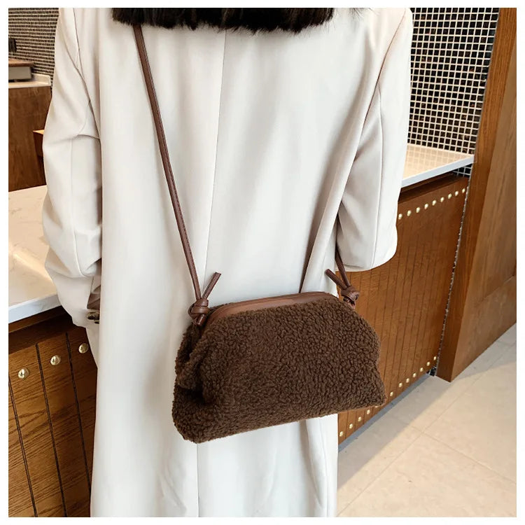 Furry Lambswool Shoulder Hobos Handbags Winter Handle Clutch Purses