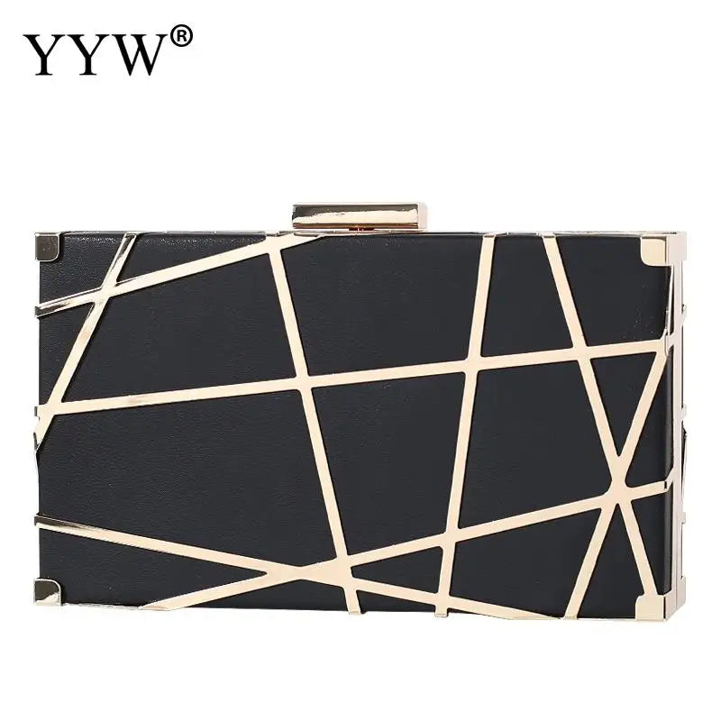 Description:Add a touch of glamour to your outfit with this stylish clutch bag. It features a geometric pattern design with metal decor and glitter accents. The chain strap allows for versatile wearing options.Features: Stylish box clutch with geometric pattern design Metal decor and glitter accents for a glamorous look Chain...