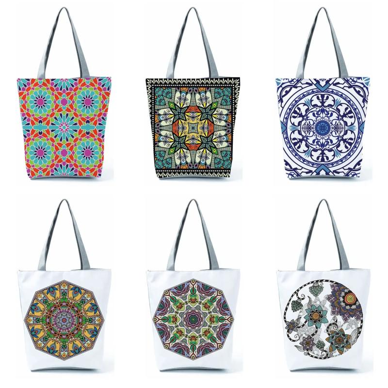 Geometry Floral Print Handbag Classic Shoulder Bag Ladies Eco Practical Shopping