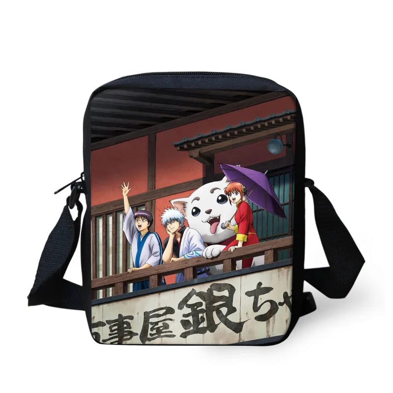 Stylish and functional Gintama print messenger bag, perfect for students and casual outings. Features a compact design with adjustable shoulder strap.
