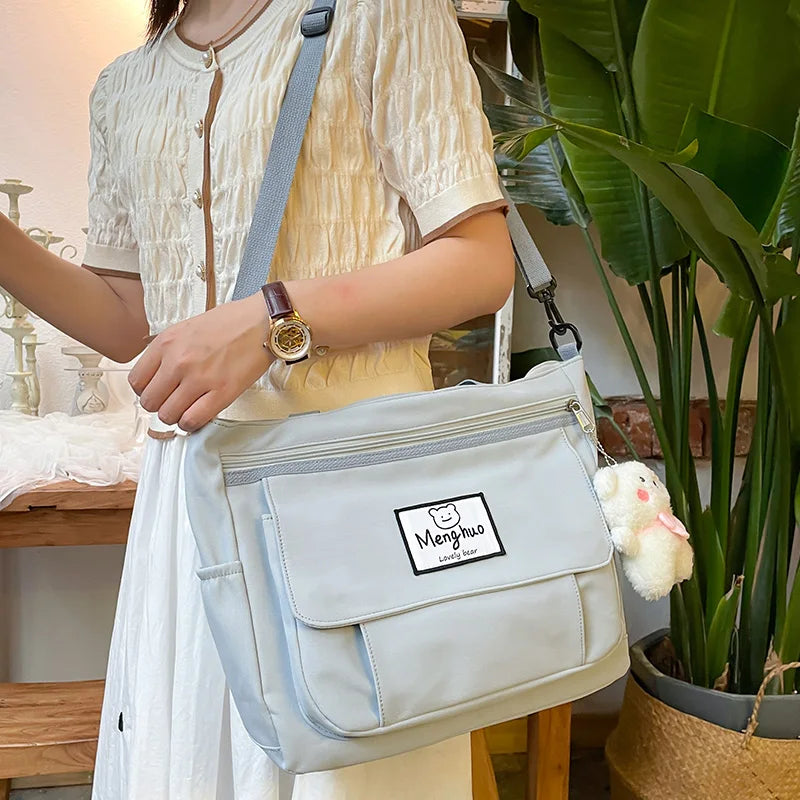 Stay organized in style with this fashionable and durable nylon shoulder bag. Ideal for school, work, or everyday use.