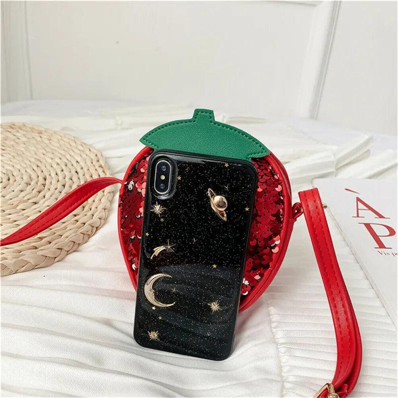Adorable and stylish handbag for girls with shiny sequins, perfect for carrying essentials. Can be worn as a shoulder bag or crossbody wallet.