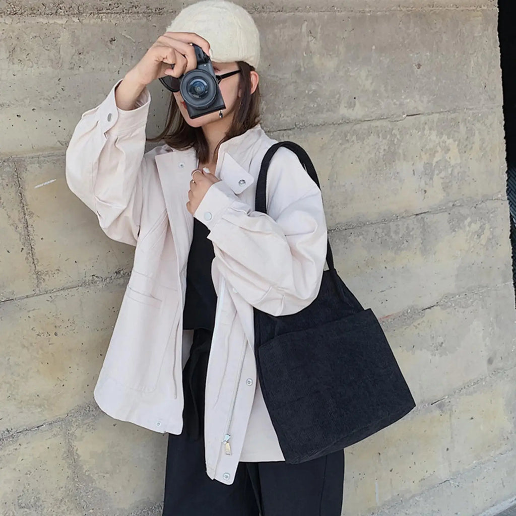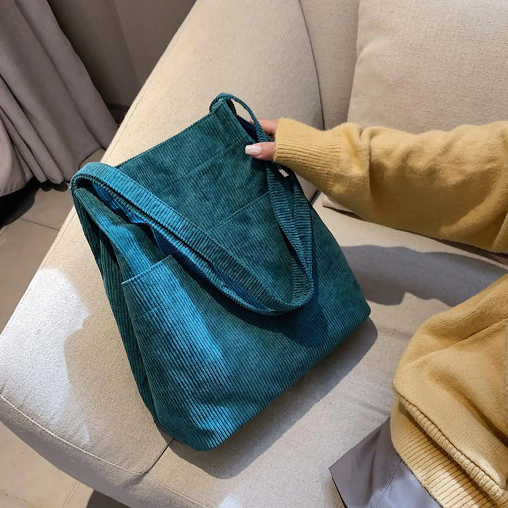 Girls Canvas Handbag Shoulder Bag Corduroy Tote