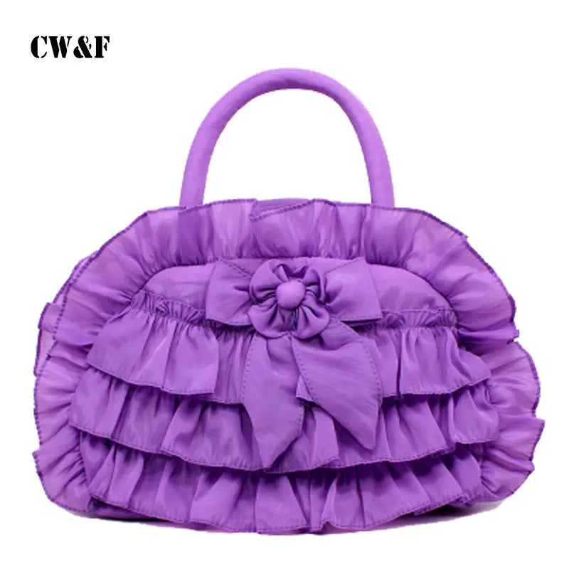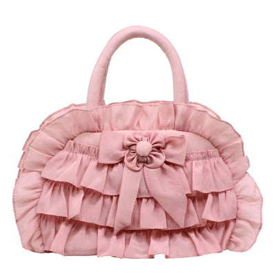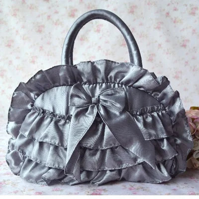 Girls Lace Cloth Handbag Princess Solid Color Bag