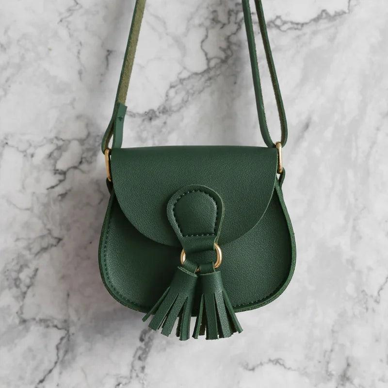 This girl's tassel shoulder bag is made of high-quality PU leather. It is small, sweet, and perfect for carrying essentials. The tassel design adds a stylish touch.