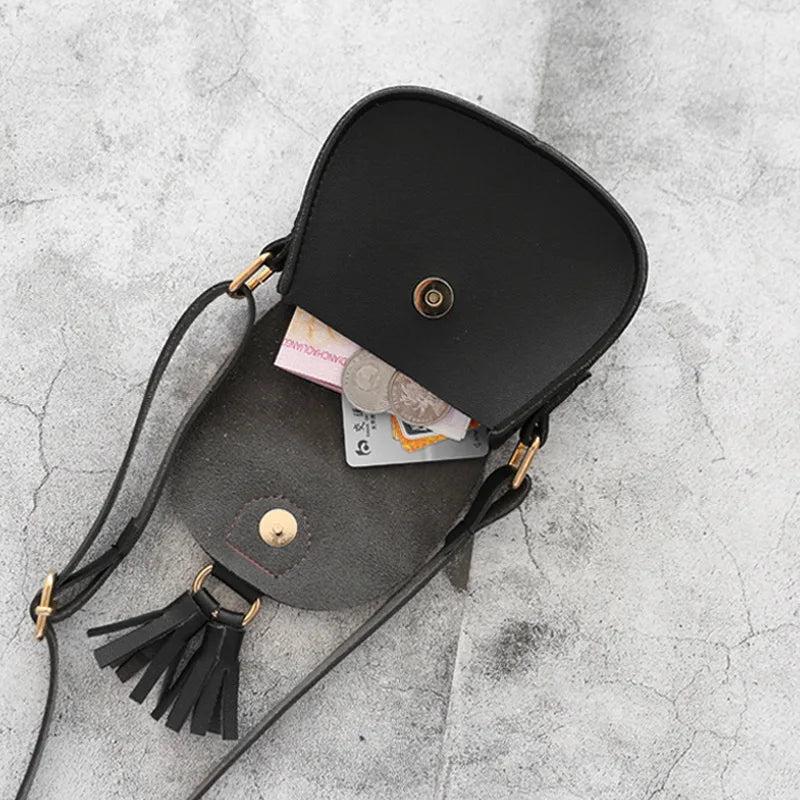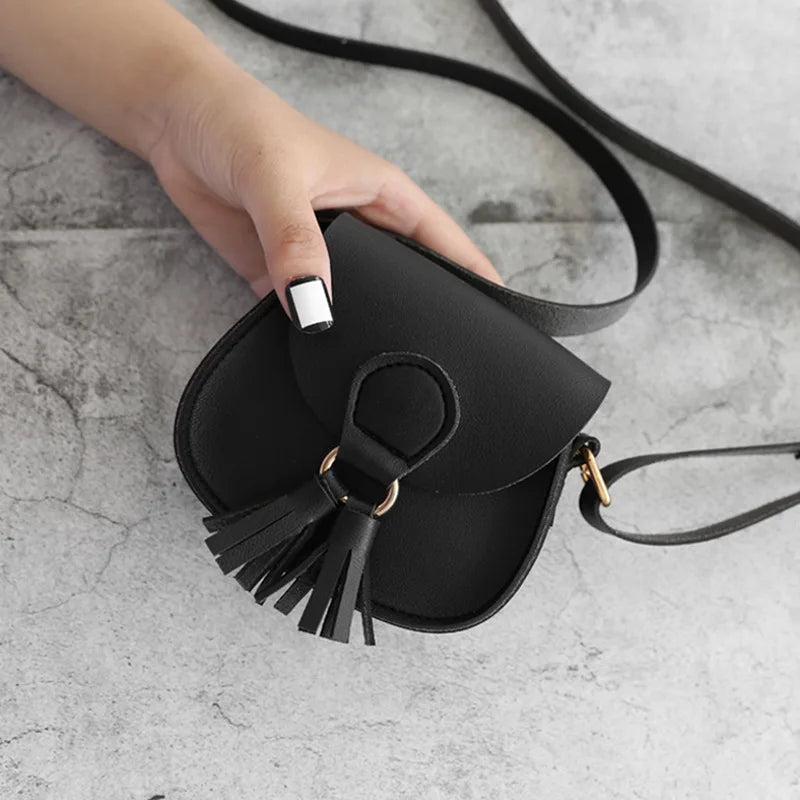 Girls Tassel Small Shoulder Bag Sweet PU Leather Waist Bag