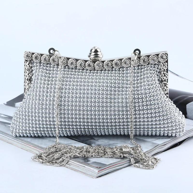 This stunning evening clutch bag is the perfect accessory for any party. Its shimmering glitter bead design adds a touch of vintage glamour, making it ideal for brides or special occasions.
