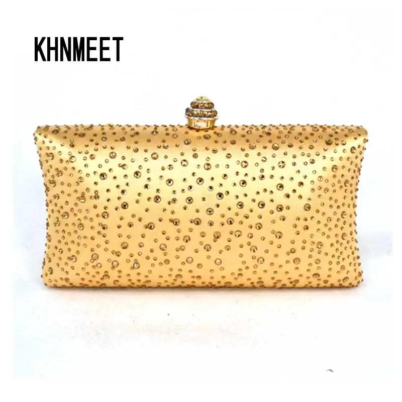 Golden Crystal Clutch Evening Bag - Wedding Bride Clutches Shine