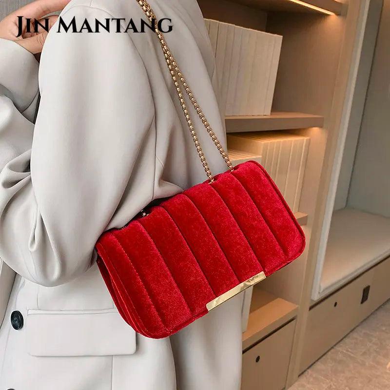 Stay stylish and organized with this winter shoulder bag. Made of luxurious golden velvet, this small handbag features a vintage design that makes it perfect for any outfit. The crossbody strap offers convenient hands-free carrying, while the tote bag style provides ample storage space for your essentials. Ideal for modern women who appreciate both fashion and functionality.