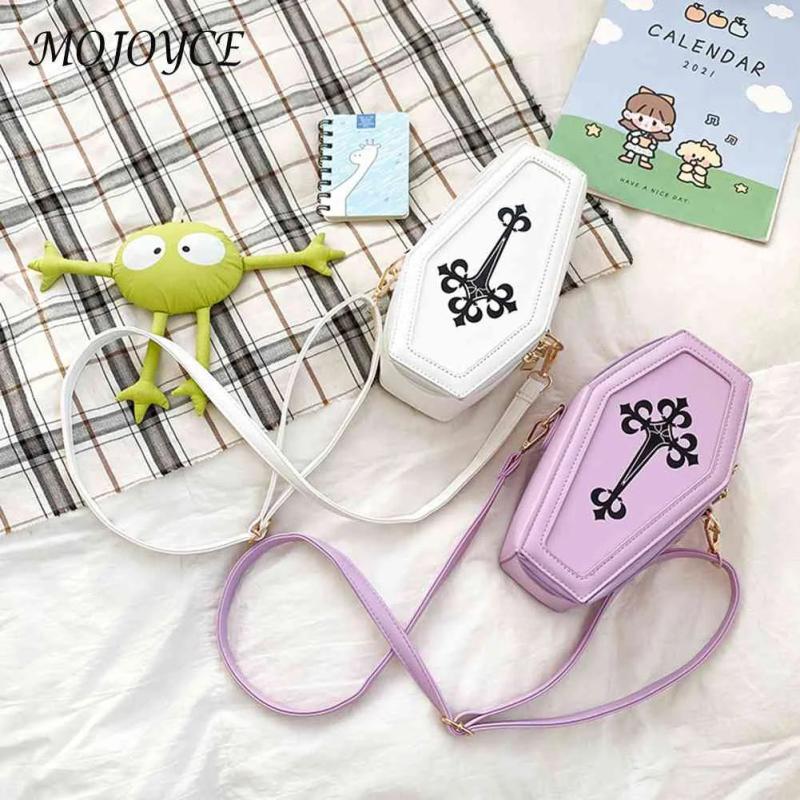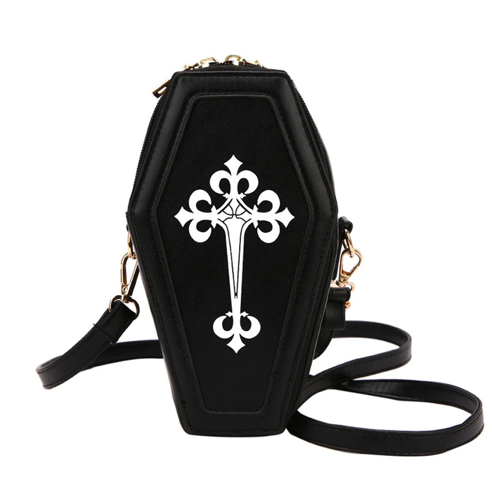 Spook up your Halloween look with this coffin-shaped messenger bag made of PU leather. Perfect for themed parties.