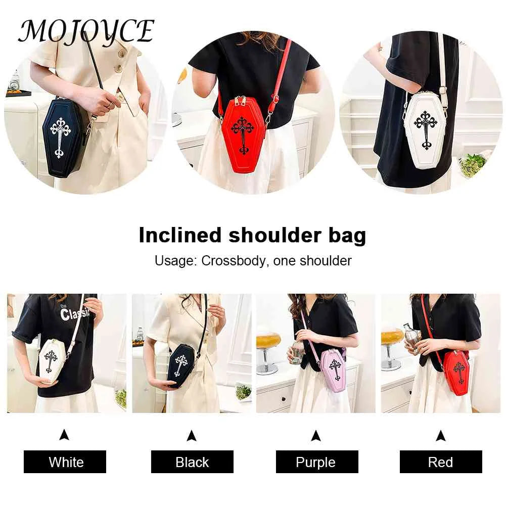 Elevate your style with this coffin-shaped crossbody handbag made of high-quality PU leather. Perfect for Halloween theme parties.
