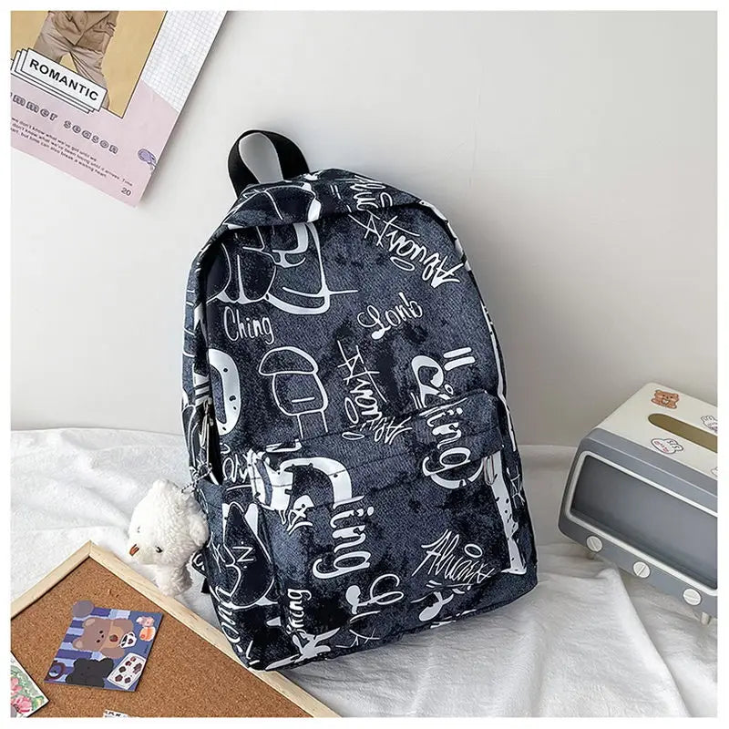 This waterproof nylon schoolbag is perfect for teenage girls. It features a graffiti design and is ideal for casual use, school, or travel. The adjustable shoulder straps provide comfort and convenience.