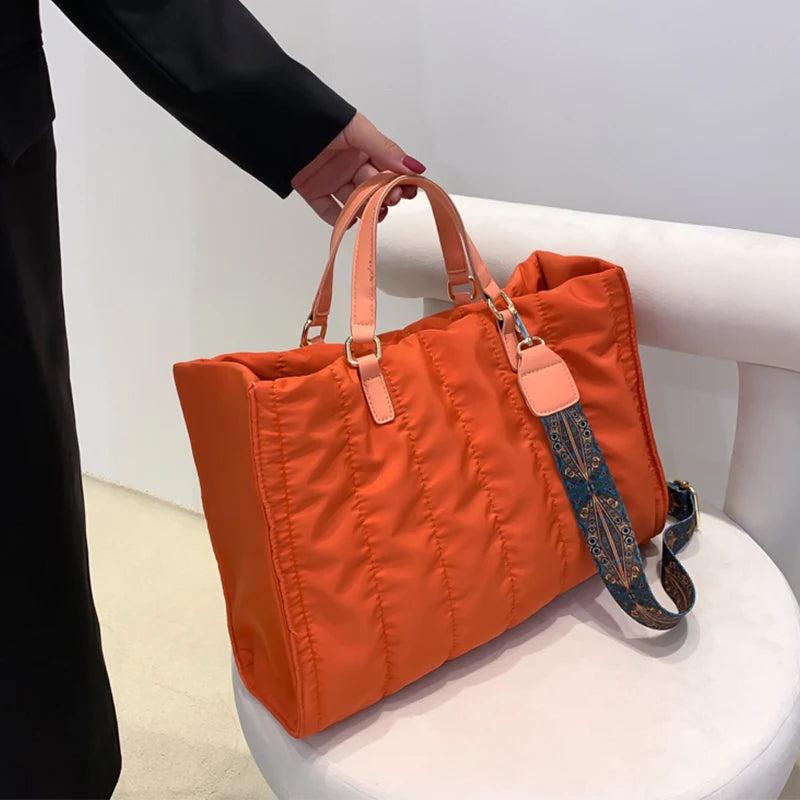 Green Beige Padded Handbag Winter Down Cotton Tote Nylon Crossbody Bag