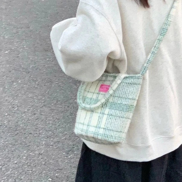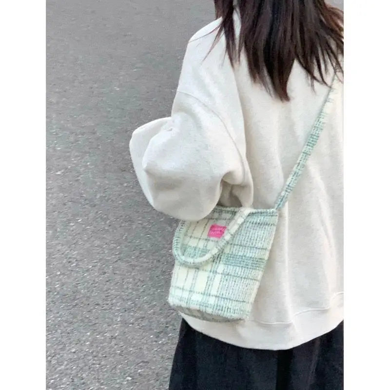 Description:Stay stylish and organized with this large capacity messenger bag made of canvas. Perfect for everyday use.Features: Autumn Winter design in trendy green matcha check pattern Canvas material for durability and easy maintenance Spacious bucket bag with enough room for all your essentials Versatile as a tote bag, messenger bag,...