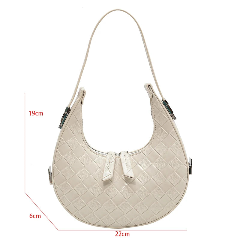 Half Moon Shoulder Bag Small Pu Leather Woven Bag Underarm Handbag