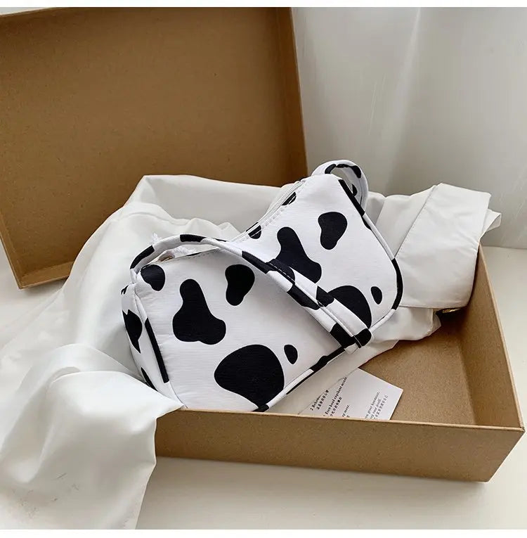 - Harajuku style shoulder bag with cow pattern