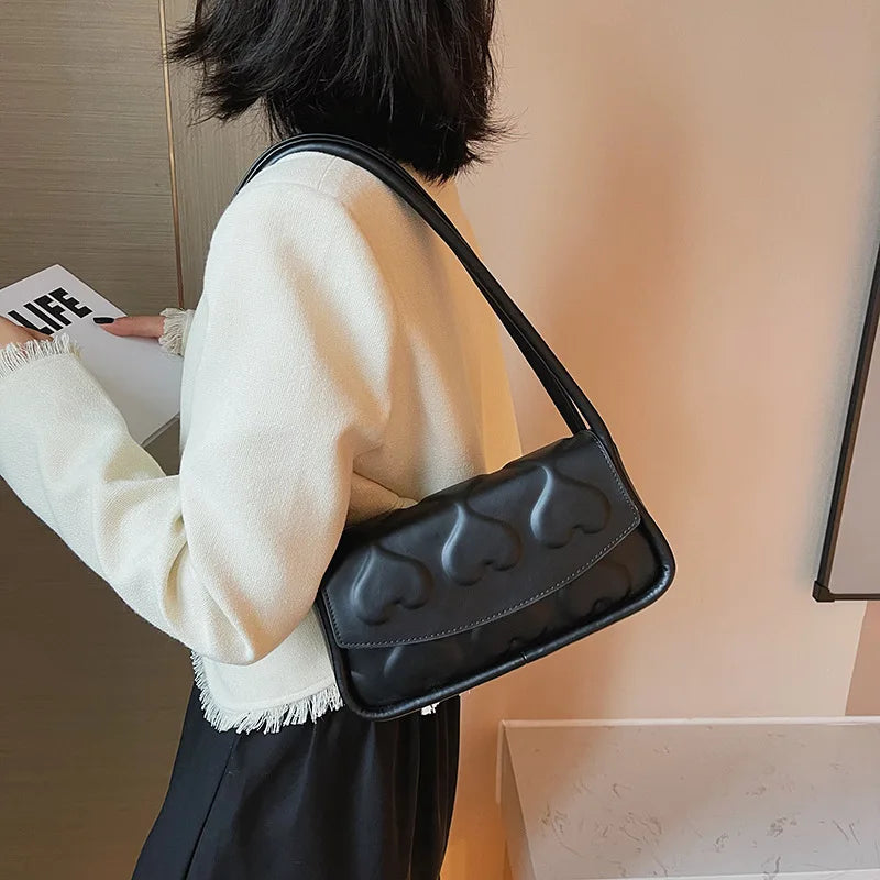 Heart Pattern Printed Handbag Small Square Underarm Bag Purses and Handbags