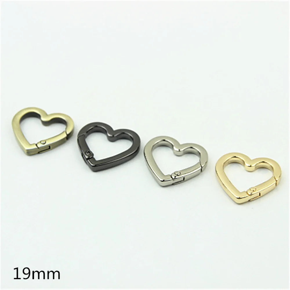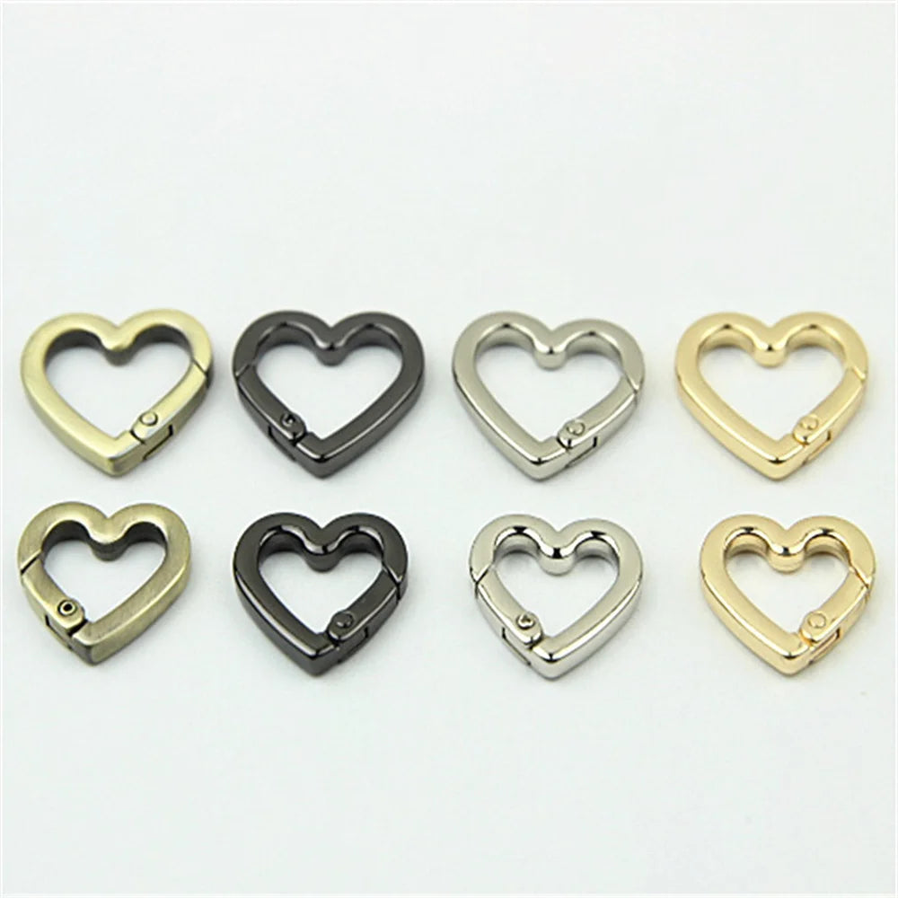 Add a touch of style and functionality to your handbag with this heart-shaped metal spring opening handbag buckle. Easily attach it to your bag or use it as a key ring pendant for a versatile accessory.