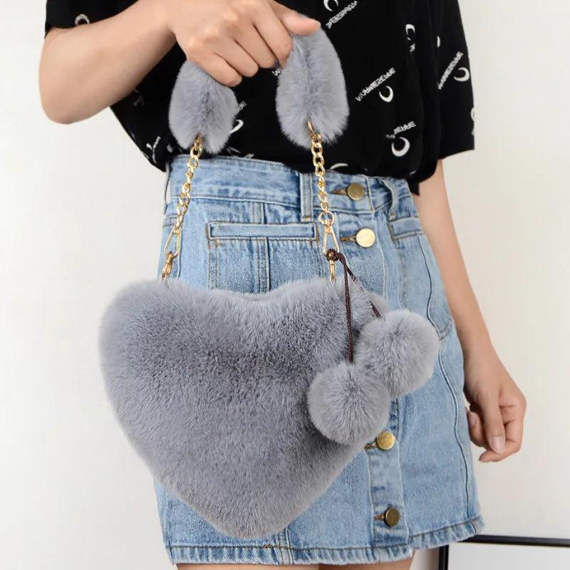 This faux plush heart-shaped shoulder bag is perfect for winter. It's a stylish Clutch Purse with a chain strap, ideal for daily use or special occasions. Show off your love with this cute and trendy handbag.