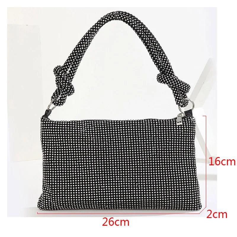 Stand out at your next event with this stunning shoulder bag adorned with shining rhinestones. Perfect for parties and special occasions.