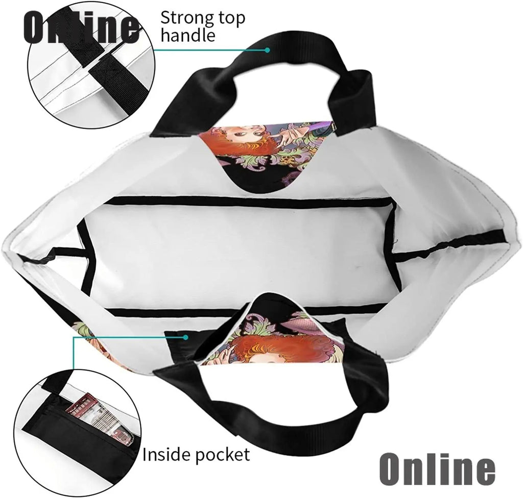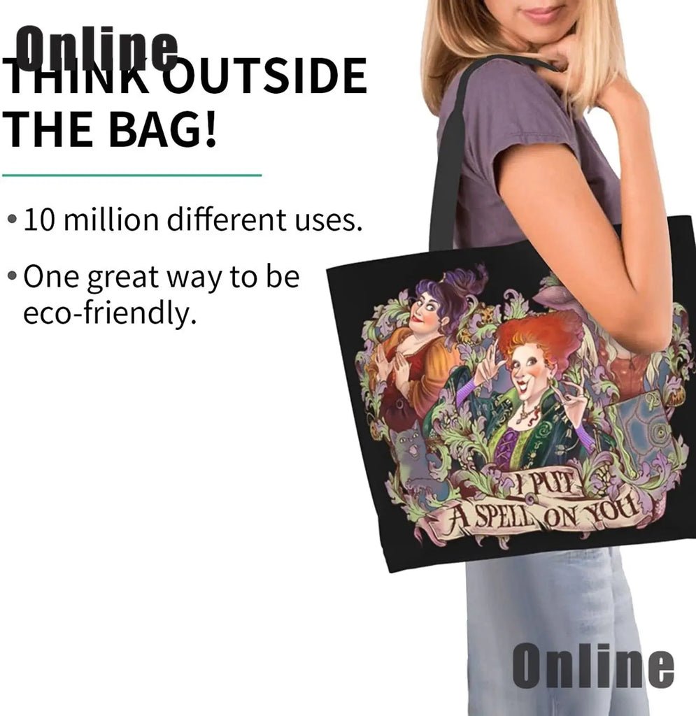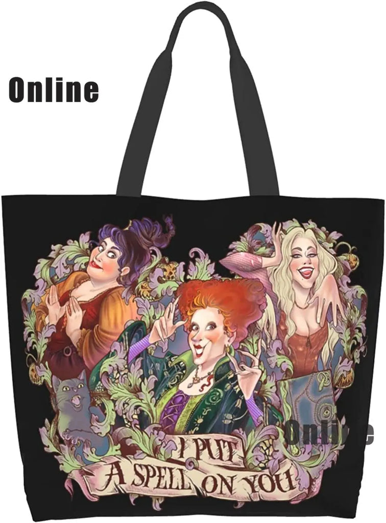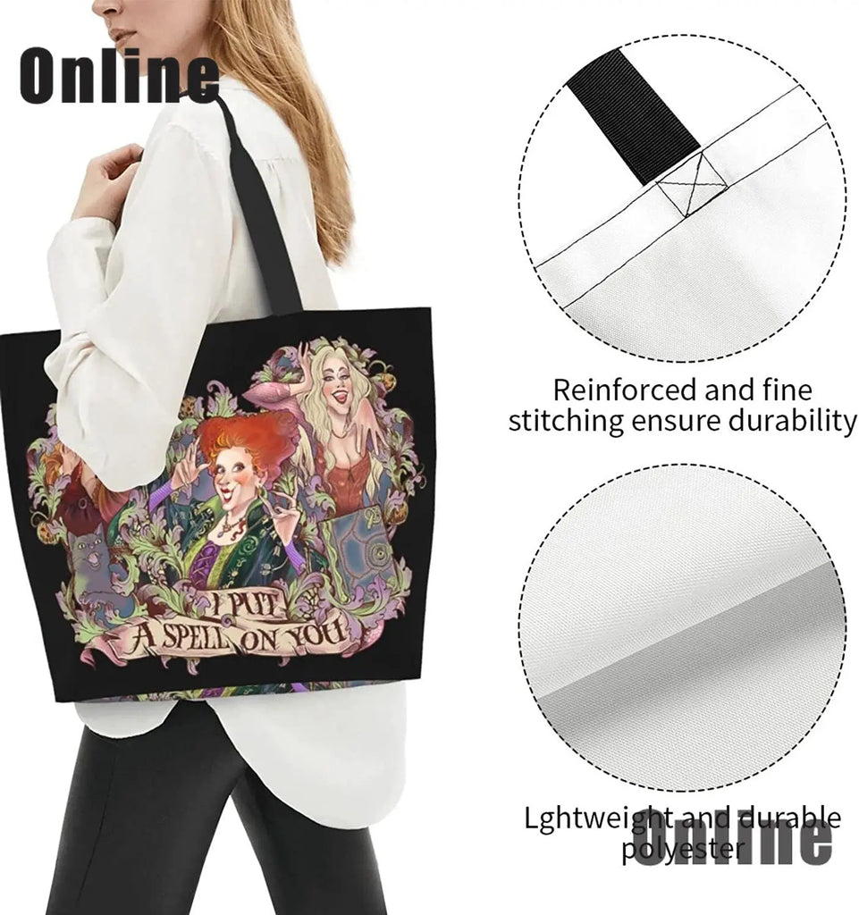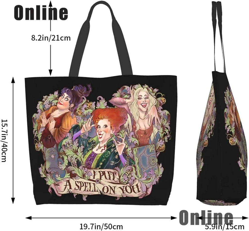 Hocus Pocus Tote Bag Halloween Handbags Heavy Duty Shopping Grocery