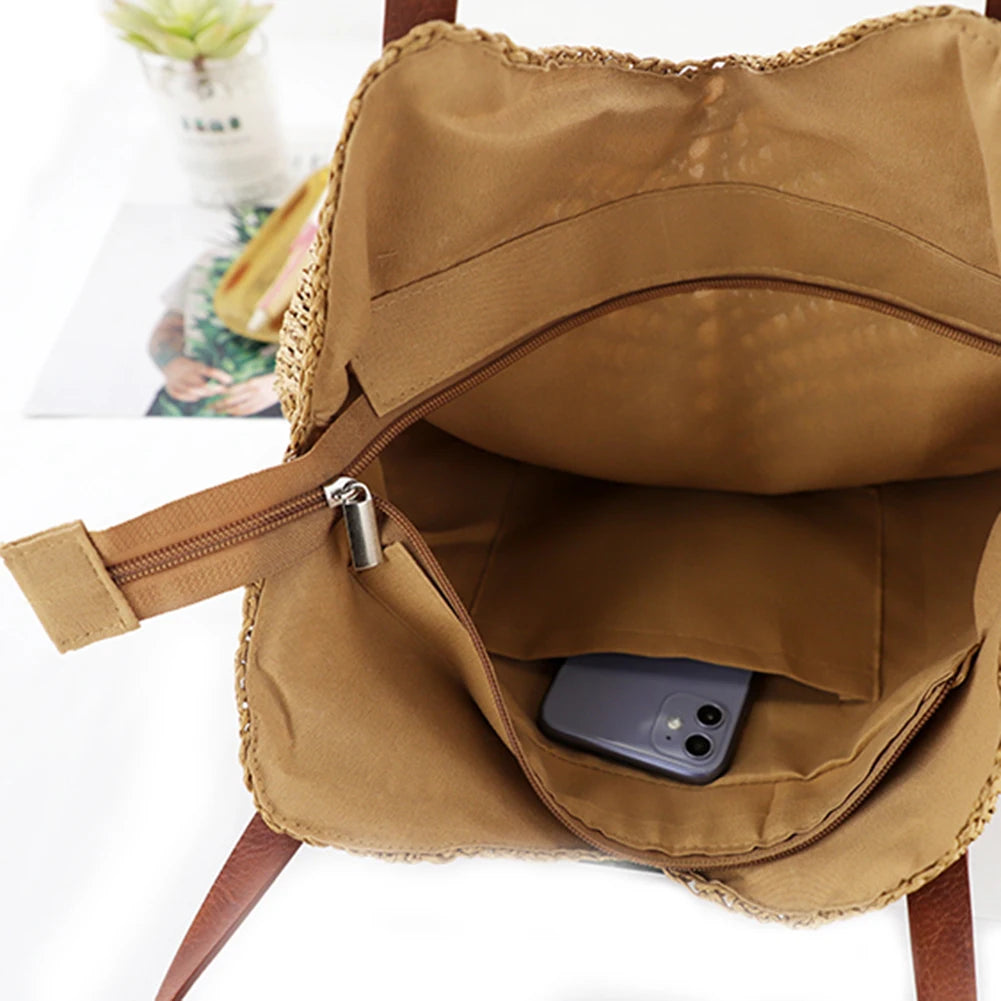 This paper rope woven shoulder bag is perfect for your summer vacation. Its hollow design adds a touch of style to your outfit. Lightweight and portable, it's great for traveling.