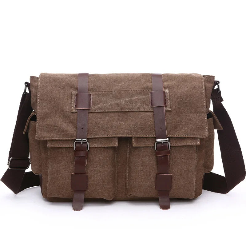 Stay stylish and organized with this large canvas shoulder bag for men.