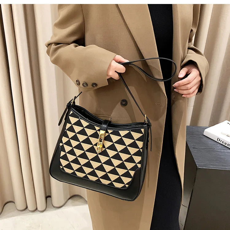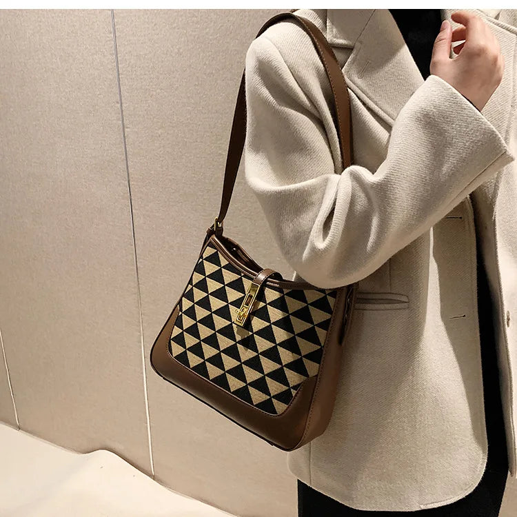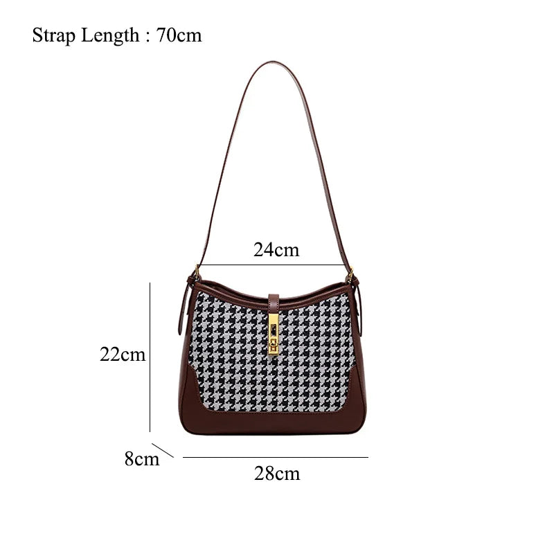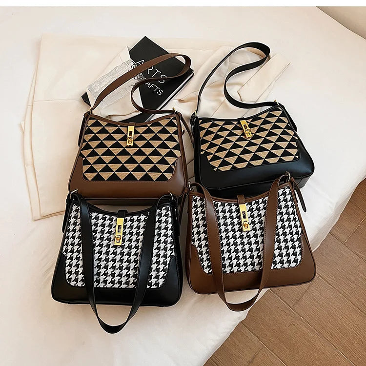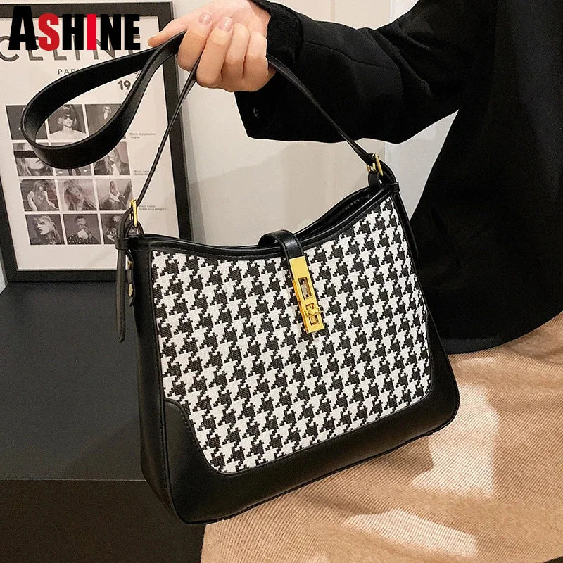 Houndstooth Bucket Purse Patchwork Shoulder Bag