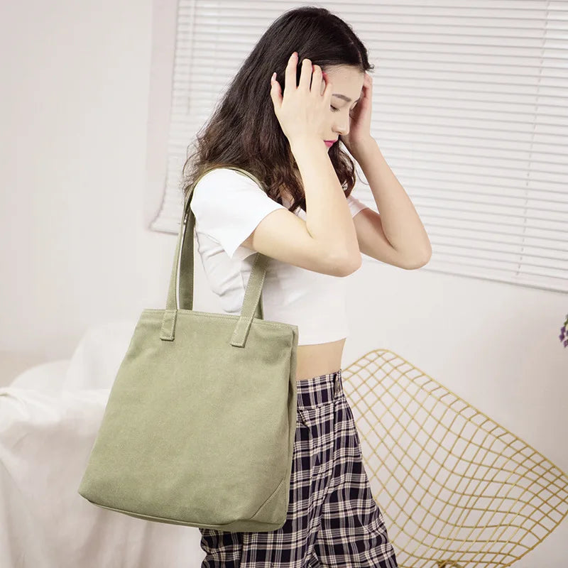 Japanese Canvas One-shoulder Tote Bag for Shopping and Commuting