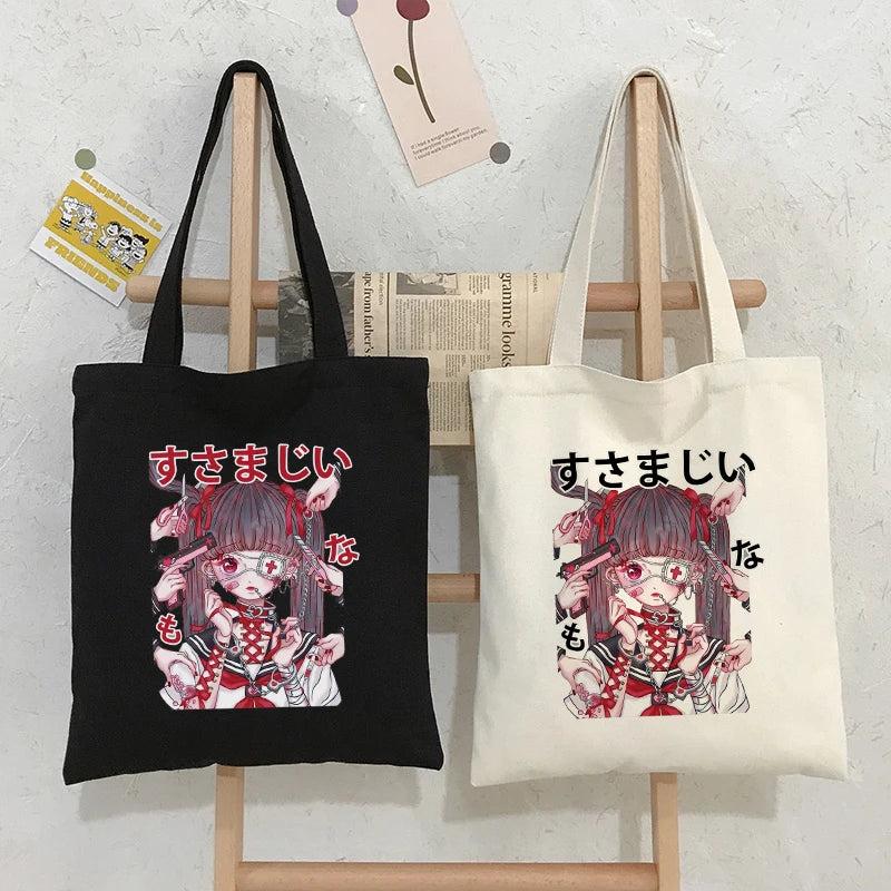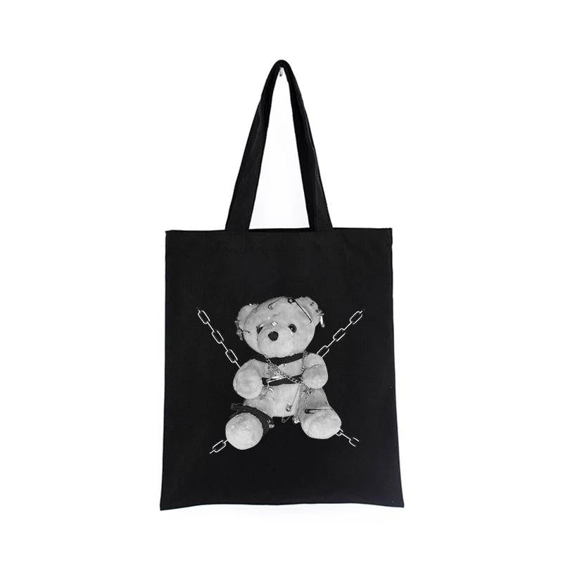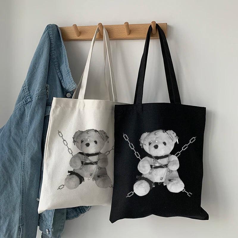 Japanese Gothic Bear Canvas Bag Dark Punk Hip-Hop Shopper Handbag