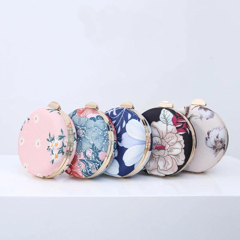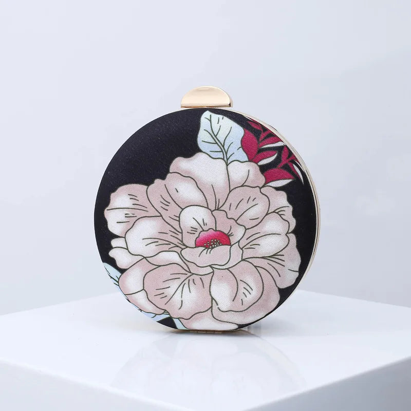 Elegant round cloth bag with beautiful flower embroidery, perfect for an evening out or a petite companion. Japanese style handbag for ladies.