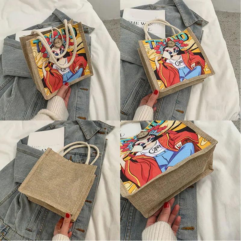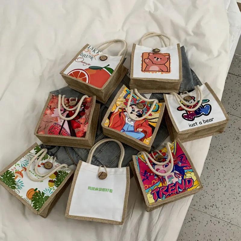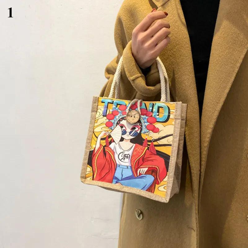 This Japanese style lunch bag is perfect for carrying your meals on the go. It is made of durable canvas material and features a small handbag design. Keep your lunch fresh and stylish with this picnic tote.
