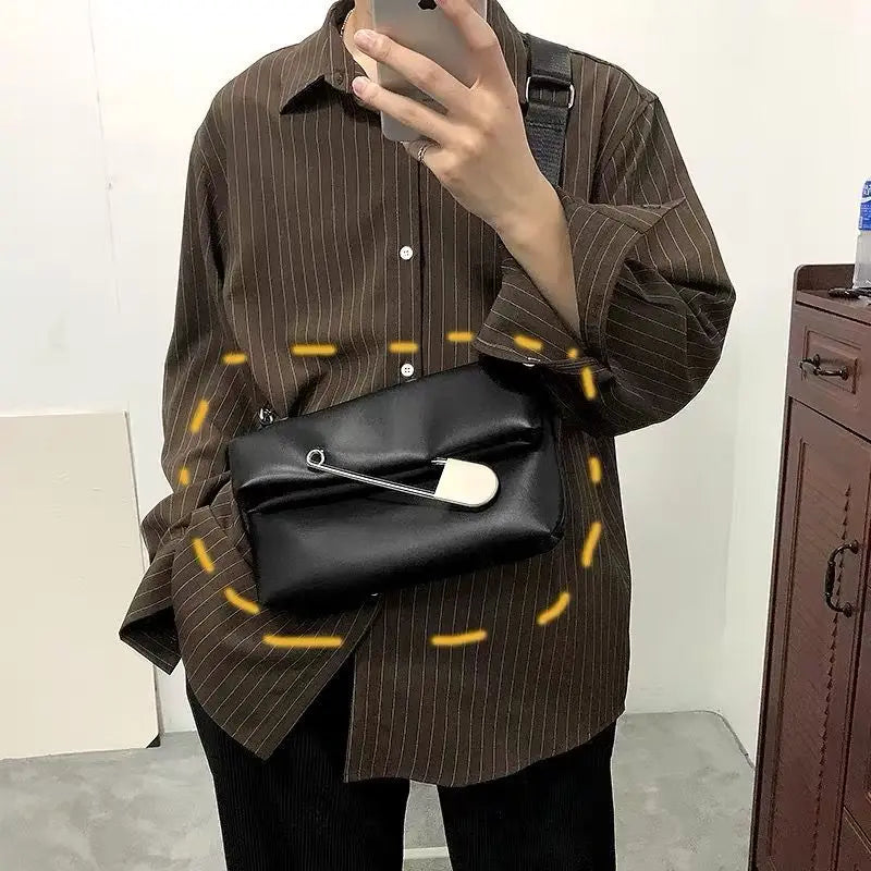 Stay stylish with this Japanese Y2k dark Pu leather oversized pin lady messenger bag that can be used as a shoulder bag. Perfect for any occasion!