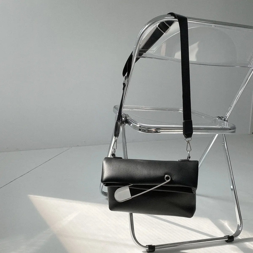 Japanese Y2k Dark Pu Leather Bag Oversized Pin Lady Bags Messenger Bag Shoulder