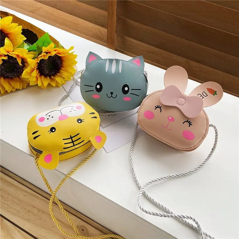 This adorable shoulder bag is perfect for kids to carry their belongings. It features a cute cartoon animal design and a convenient round zipper.