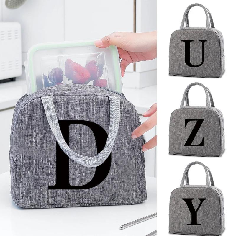 Kids Insulated Lunch Bag 26 Letters Tote Cooler Thermal Bento Food Organizer