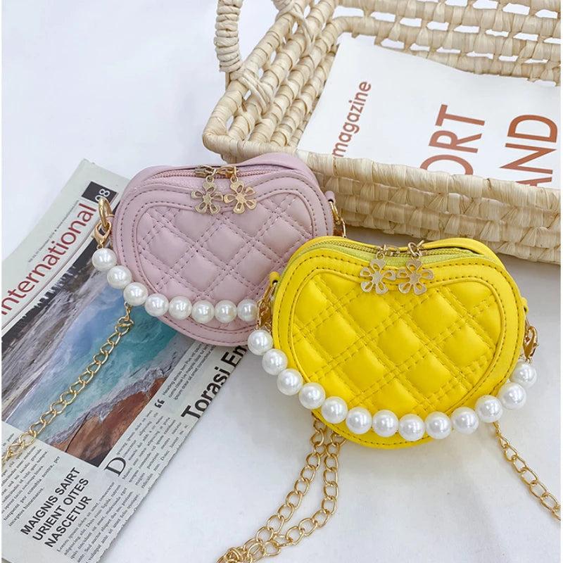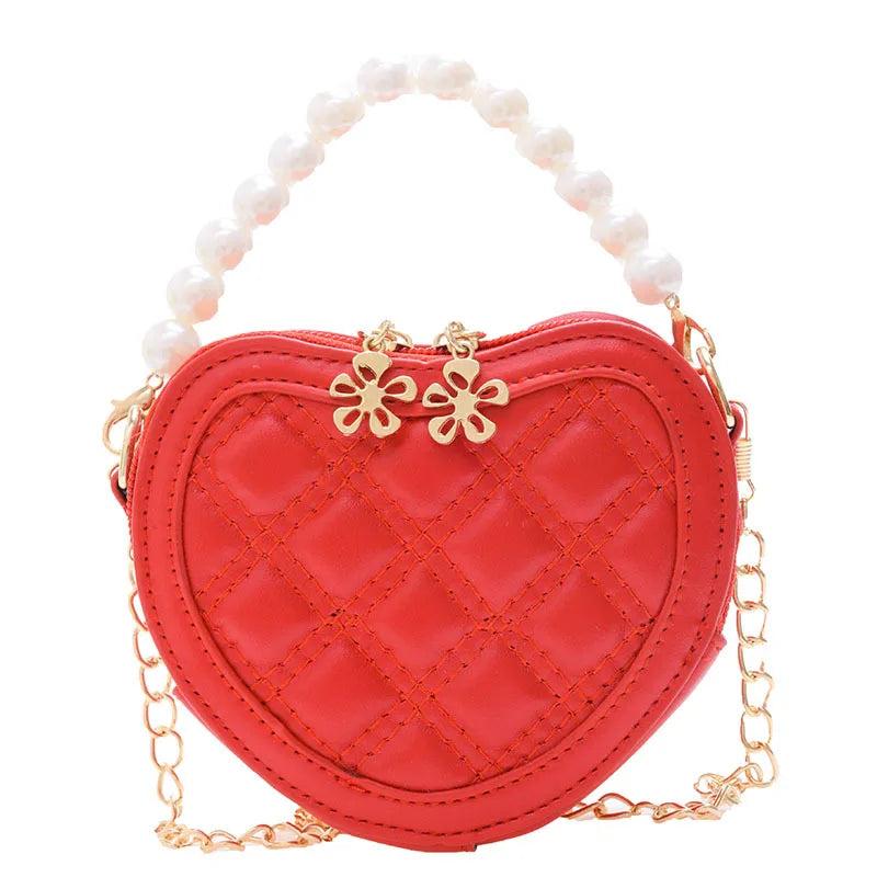 Adorable mini handbag for kids made of high-quality leather. Perfect gift for little girls to carry their essentials. Features a cute heart design and a crossbody strap for easy carrying.
