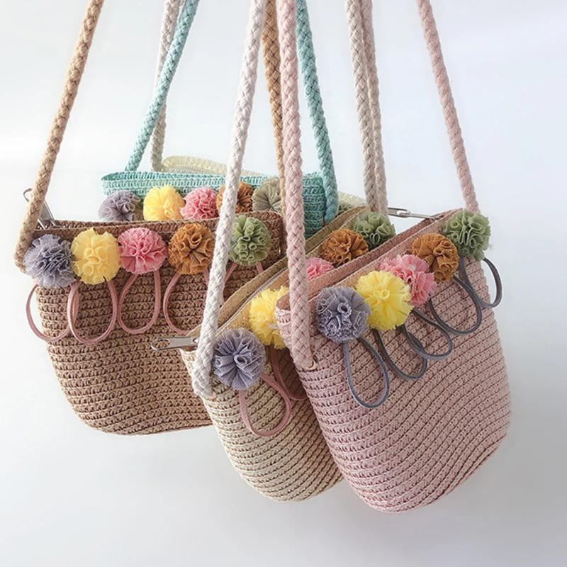 Kids Mini Shoulder Bag Straw Beach Bag Girls Rattan Bag