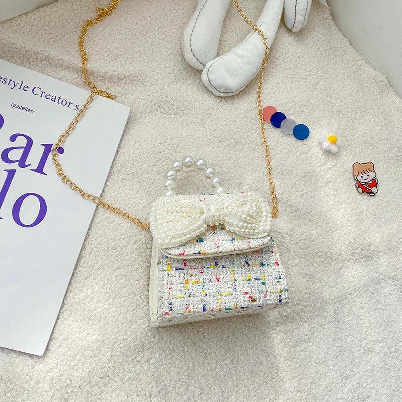 Kids Shoulder Bag with Pearl Handle Mini Crossbody Pack Handbag