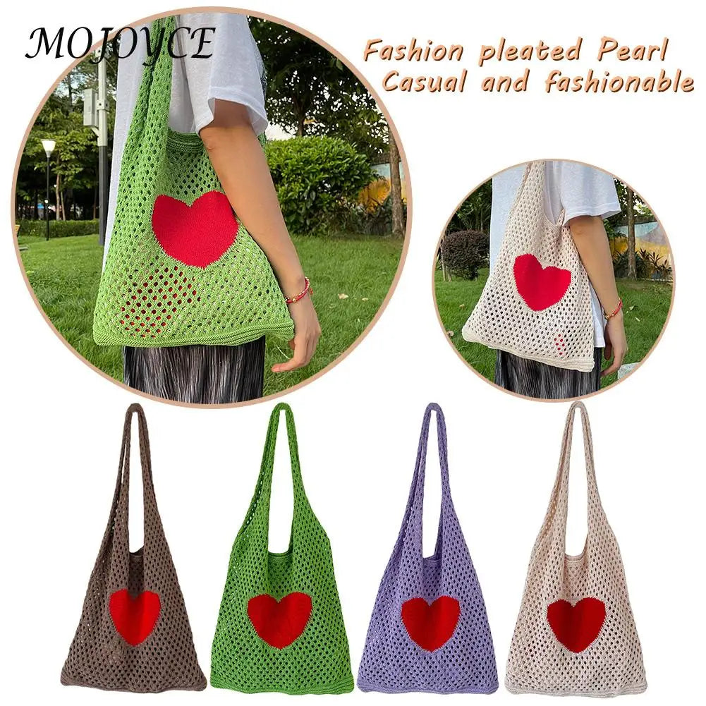 Knitted Shoulder Bag Casual Mesh Woven Handbag Travel Portable Clutch