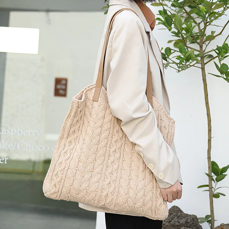 Knitted Wool Handbags Casual Mori Style Woven Shoulder Bag