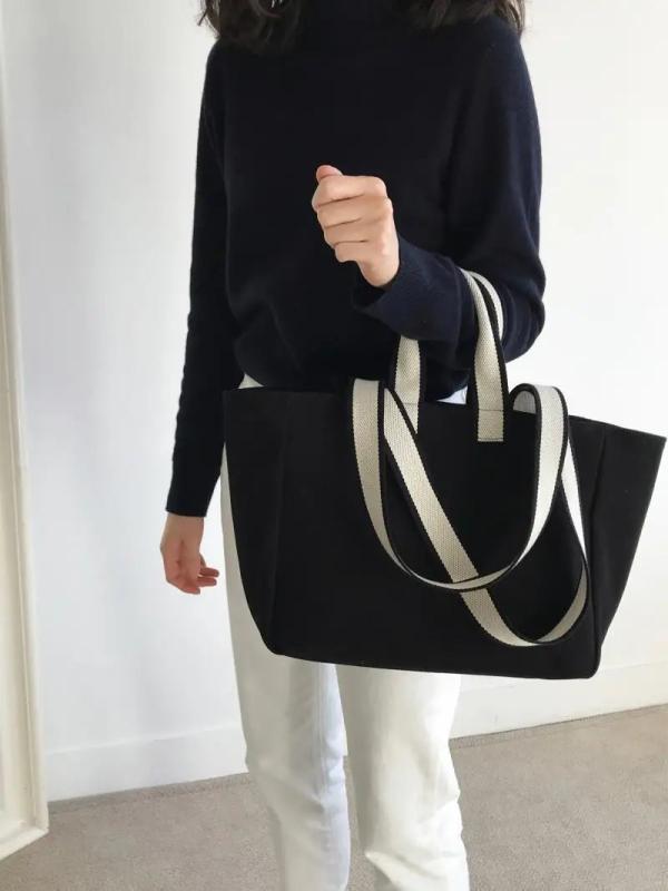 This high-capacity tote bag is crafted from soft canvas material, featuring a solid color design with a hasp closure. Perfect for preppy style girls, it is a versatile and all-match accessory.