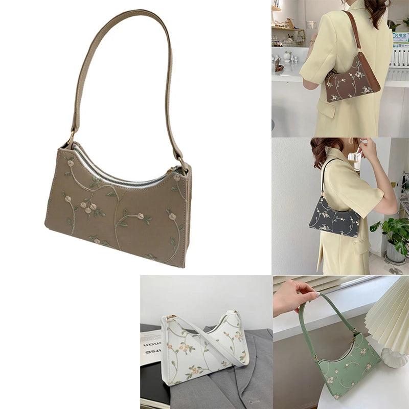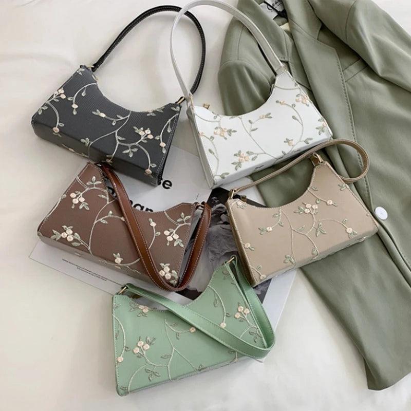 Elevate your casual style with this charming shoulder bag featuring intricate lace embroidery and small flower details.