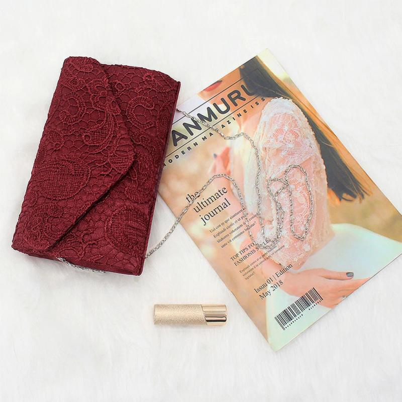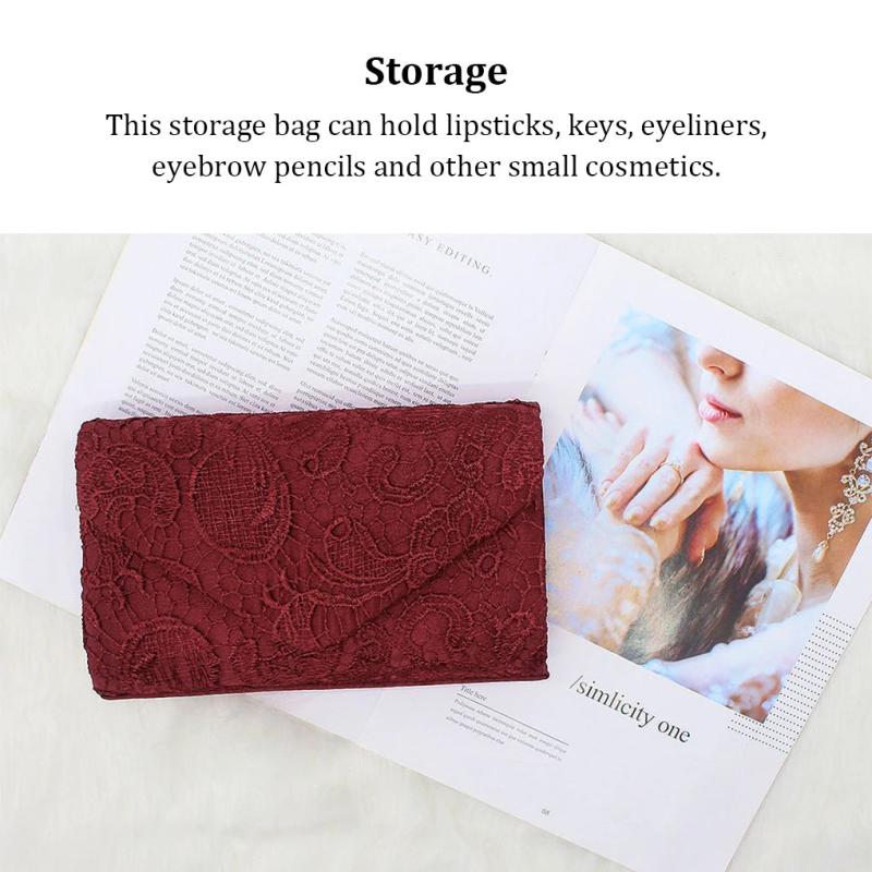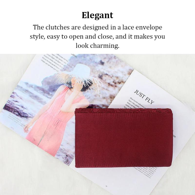 This elegant envelope clutch is perfect for weddings, banquets, travel, or office use. It features delicate lace decoration.