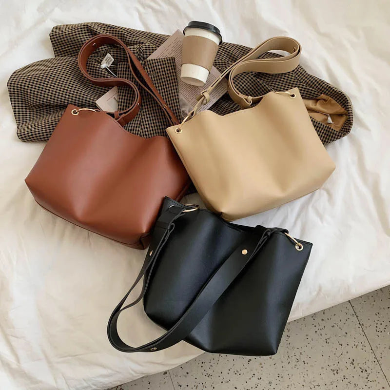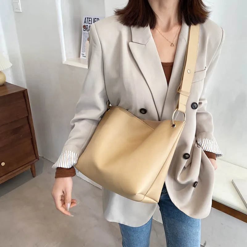 Ladies Bucket PU Leather Shoulder Bag Single Shoulder Large Capacity Messenger