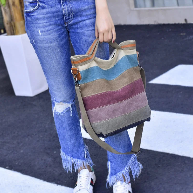 Retro style canvas tote bag perfect for students or shoppers. Versatile crossbody design for girls.