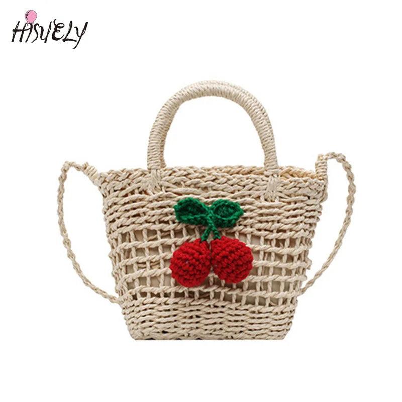 - Woven straw bag with cherry design