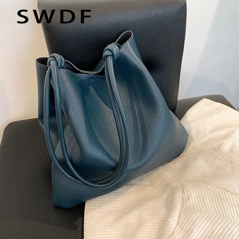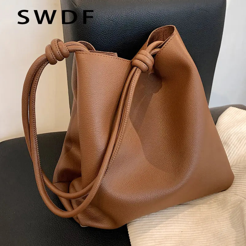 Ladies Large-capacity Shoulder Bag Soft Leather Bucket Bag