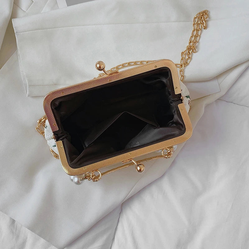Lady Shoulder Bags Flowers Pearl Chain Handbags PU Crossbody Bag
