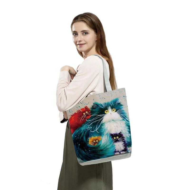 Lady Tote Bags Cat Printed Fabric Eco Handbag High Capacity Shopping Office